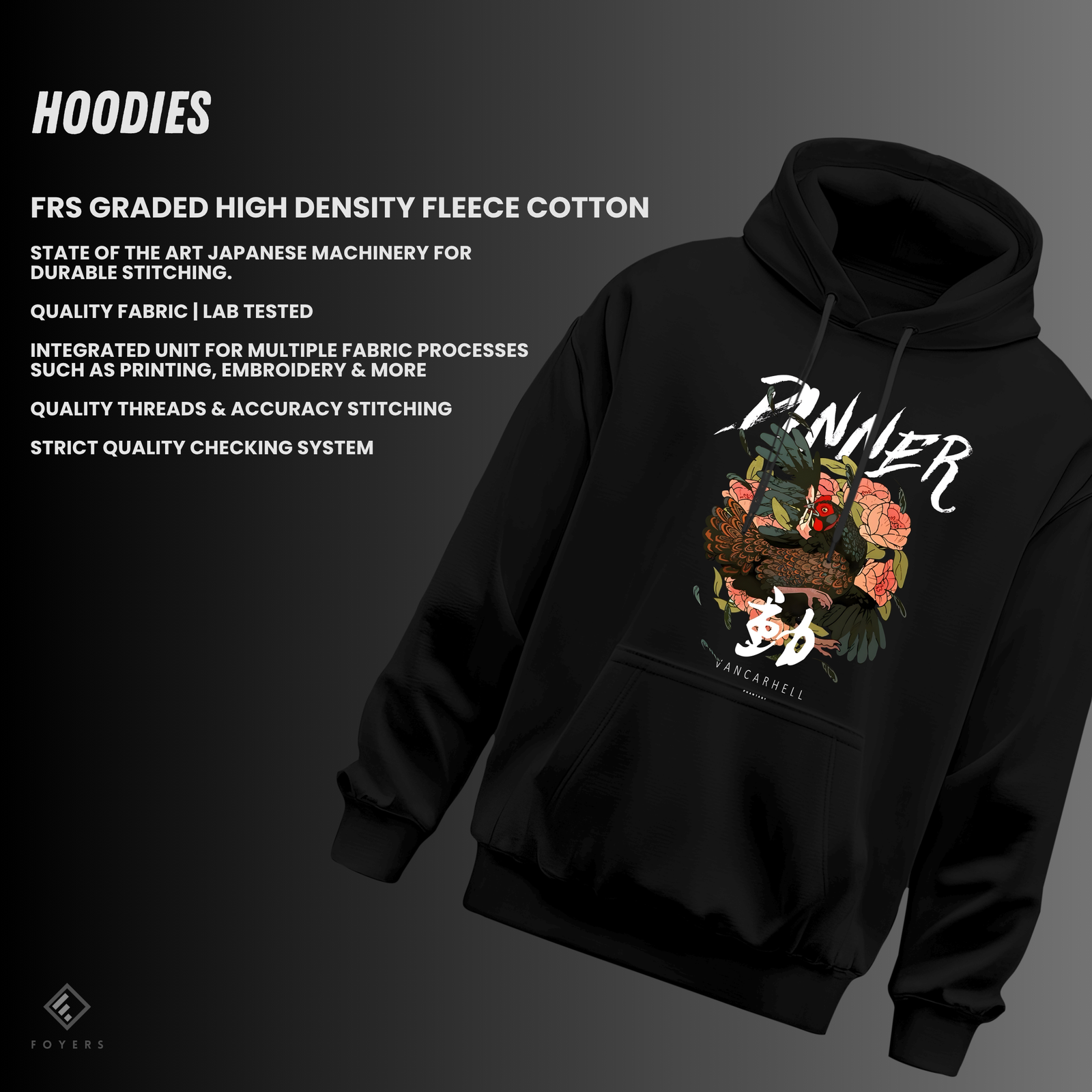 Inner Strength Floral Rooster FRS High Density Fleece Cotton High GSM Comfy Hoodies